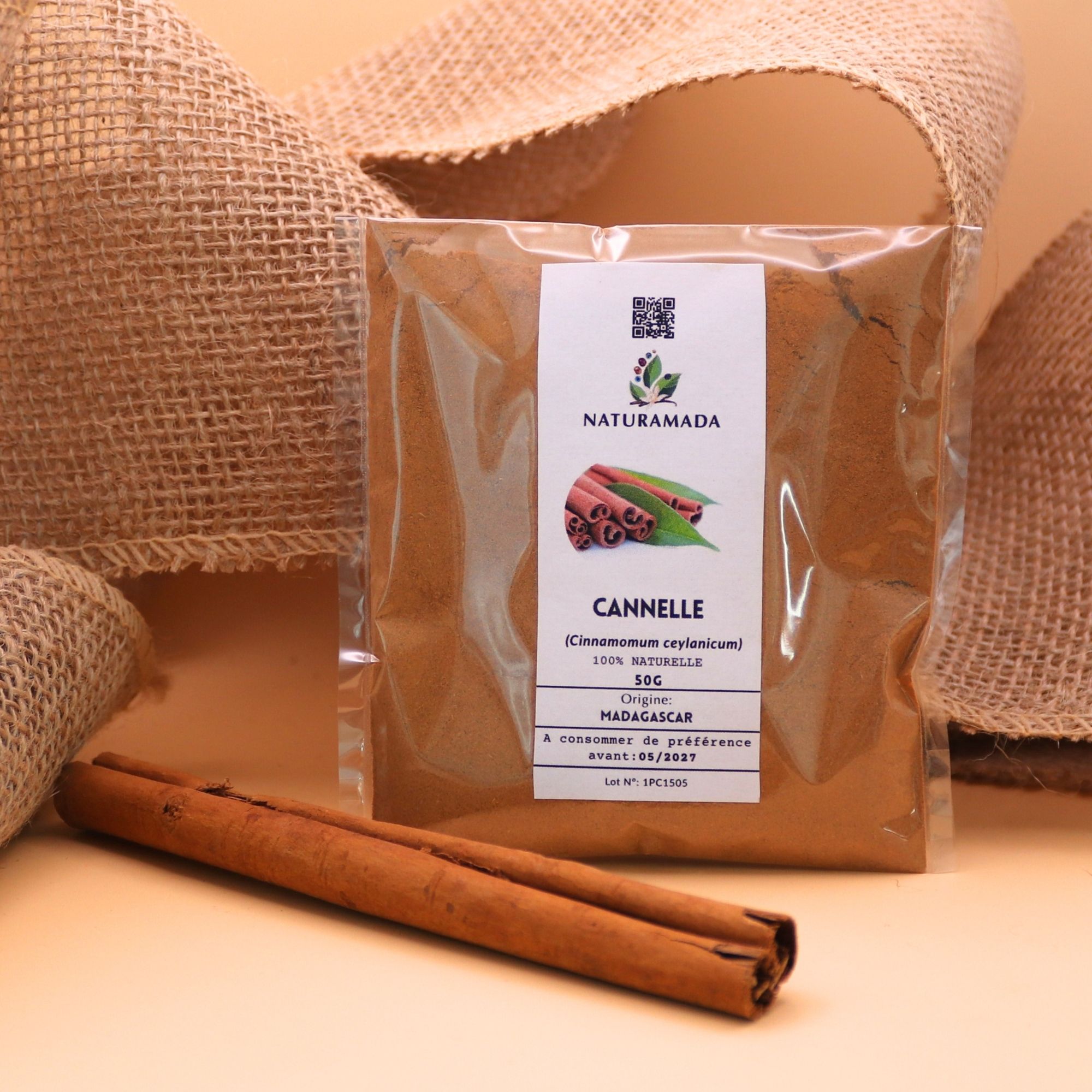 Our 100% natural cinnamon powder is carefully ground to preserve all its aromatic intensity and benefits. Its warm, sweet and spicy taste adds a unique touch to your everyday recipes.