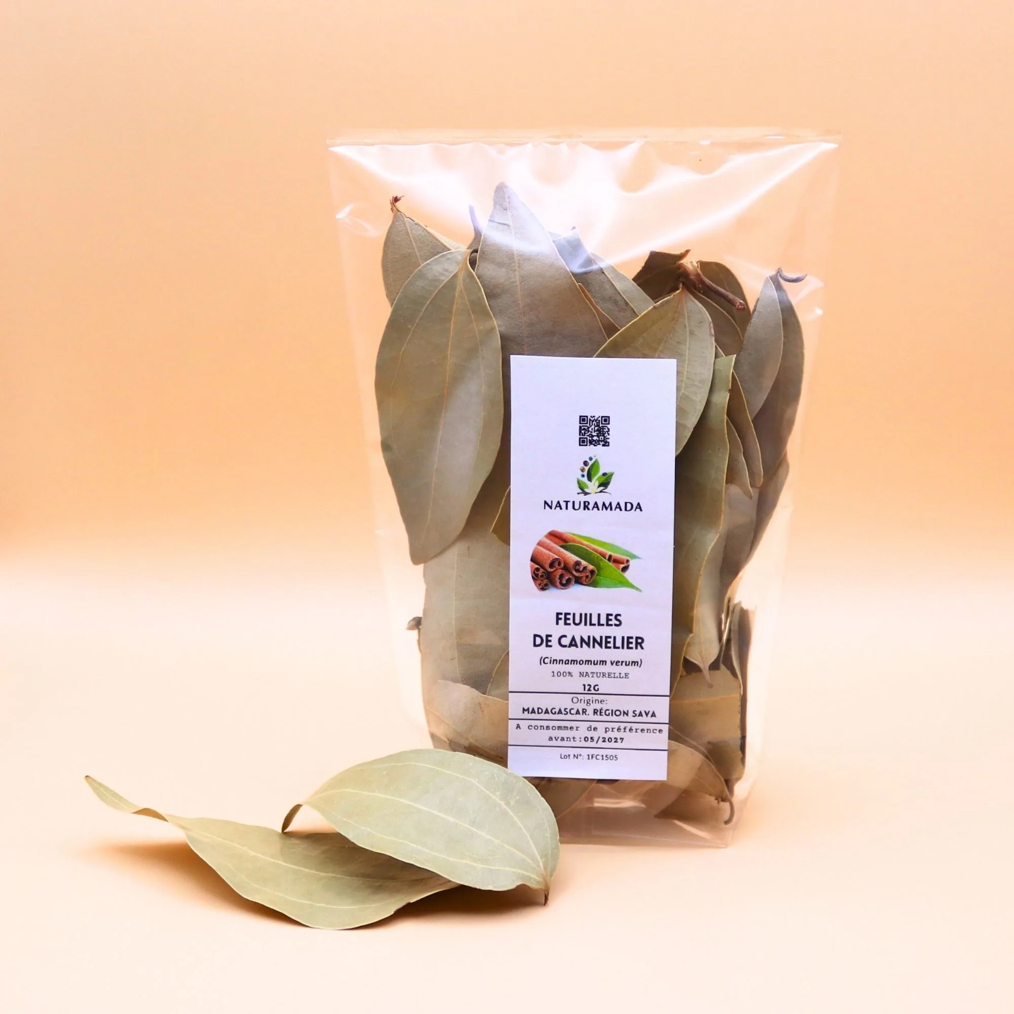 Nos feuilles de cannelier séchées sont récoltées à la main au nord-est de Madagascar. Séchées naturellement, elles conservent leur parfum doux, chaud et légèrement épicé, typique du cannelier (Cinnamomum Verum.).