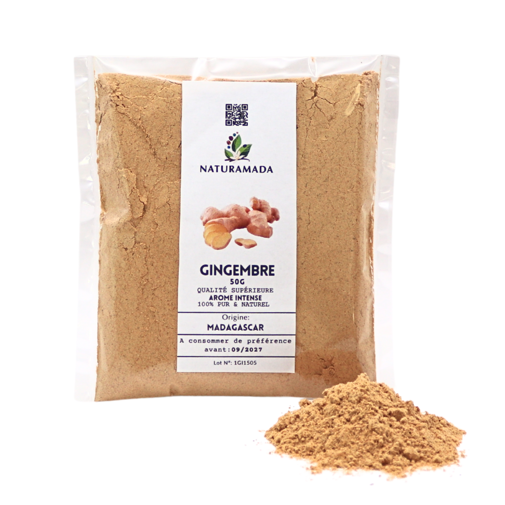 La poudre de gingembre Naturamada est issue de rhizomes soigneusement séchés puis moulus pour conserver toute la richesse de ses arômes et ses bienfaits. Son goût chaleureux, épicé et légèrement citronné en fait une épice incontournable de la cuisine du monde.